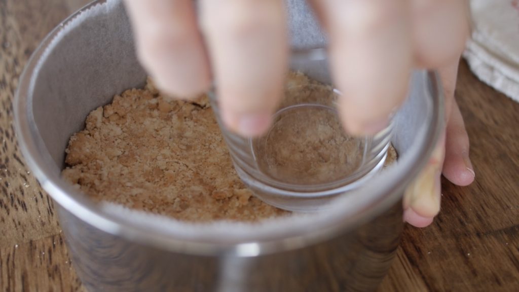 3.クッキングシートを敷いた型に敷き詰め、冷蔵庫で冷やしておく。