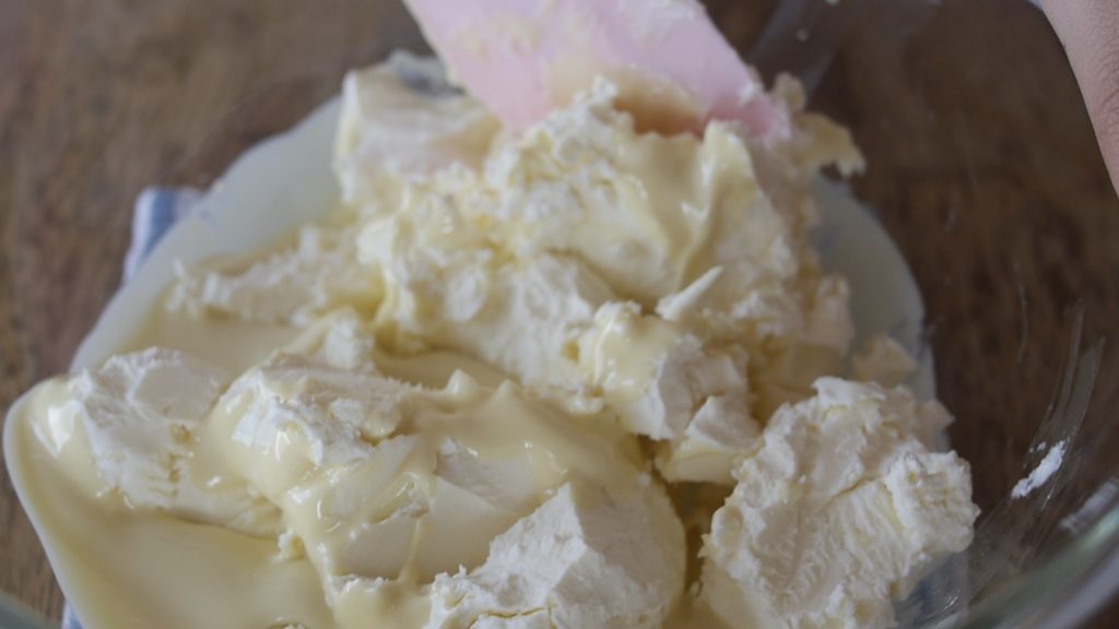 5.常温に戻したクリームチーズを加え、滑らかになるまで混ぜる。