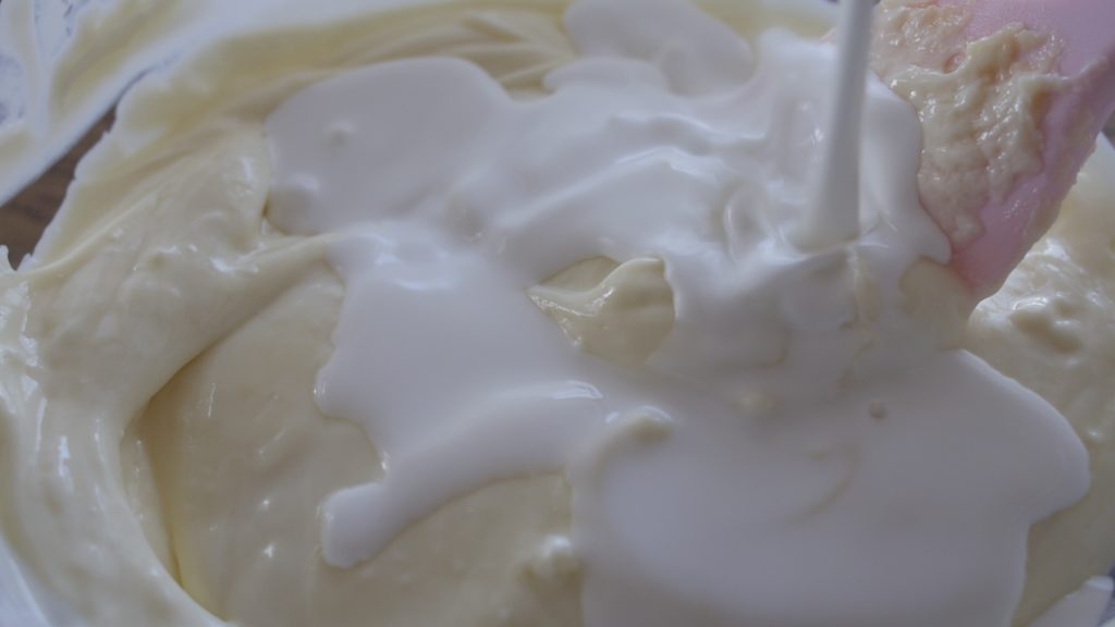 6.残りの生クリーム(85ml)を加え、なめらかになるまで混ぜる。