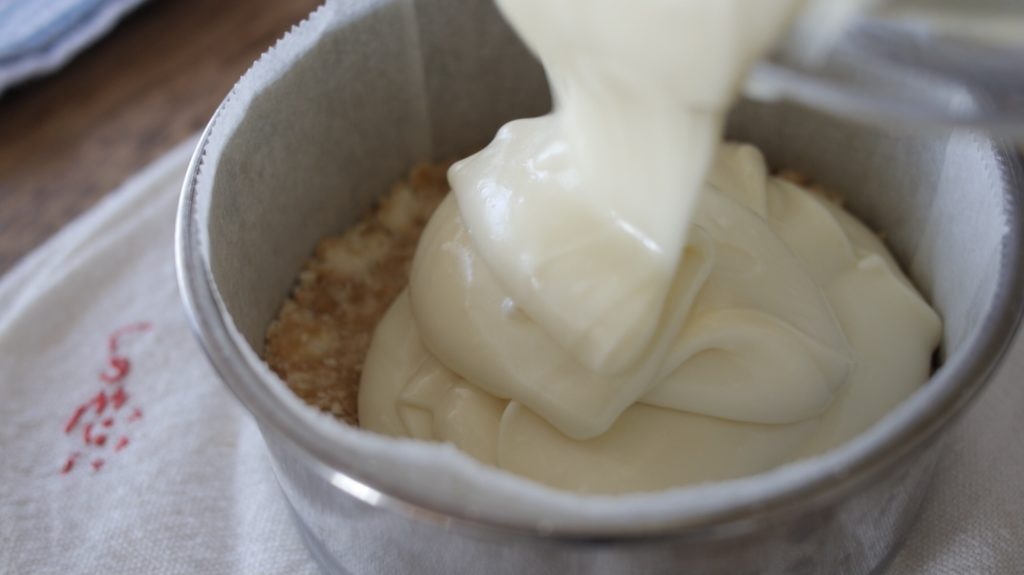 一般的なレアチーズケーキは、ゼラチンを使うのですが