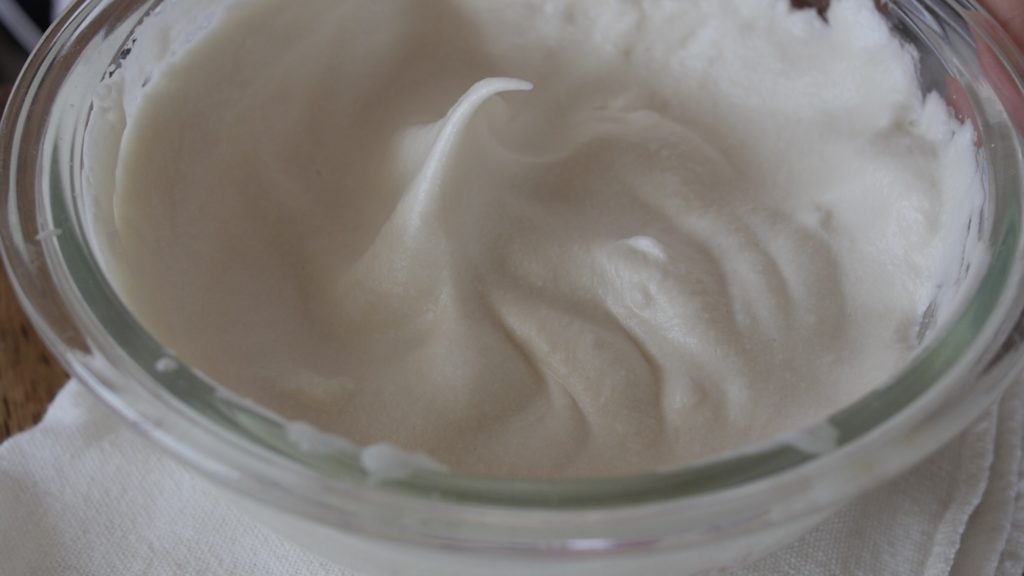 全体を泡立て器でクルクルしてすくい上げた時に、角の先がおじぎするくらいが目安です♪