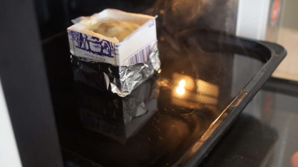 中にクッキングシートをセットし、牛乳パックの底をアルミホイルで覆う。