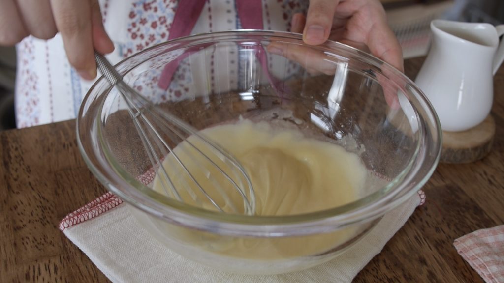 底に混ざりきれていない生地があるので、それをしっかりすくい上げて混ぜてあげる。