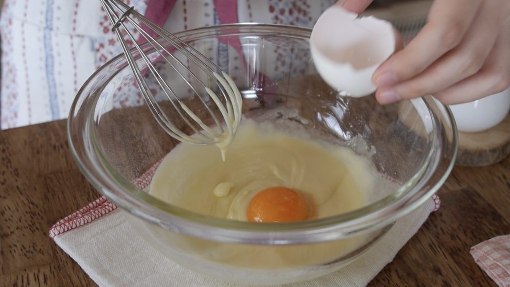 4.卵黄を(複数作る場合は、1個ずつ)加えその都度よく混ぜる。
