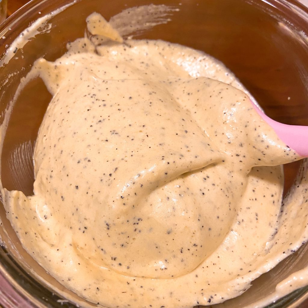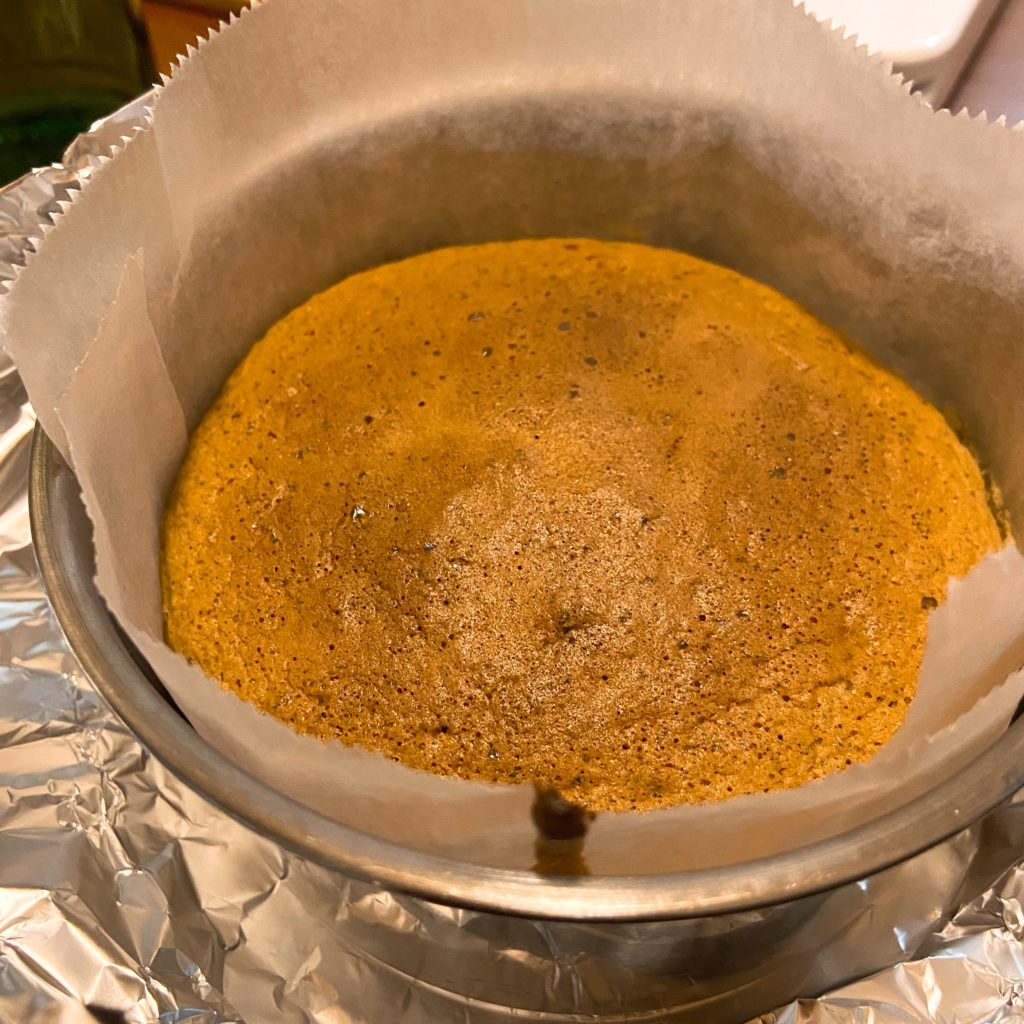 6.クッキングシートをセットした型に生地を流し入れ、170℃で予熱したオーブンで25分焼く。