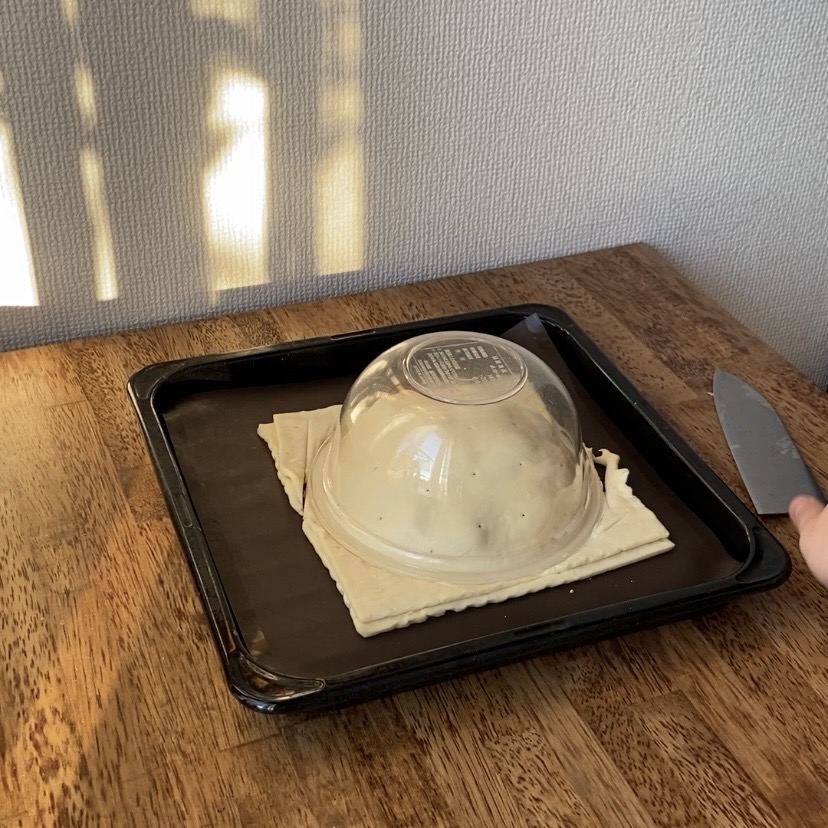 その上からパイシートをかぶせて、ボウルなどでくり抜く。
